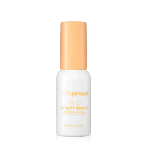 Skin Proud Bright Boost Serum is a lightweight facial serum formulated with 2% Vitamin C to help brighten dull-looking skin and improve overall radiance. Enriched with softening Vitamin B5, it helps hydrate, smooth, and support the skin barrier, making it ideal for daily skincare routines.